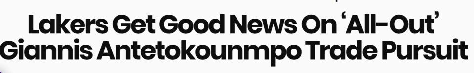 “但几乎所有这些方案都有一个共同问题:阵容深度。字母哥年薪约5800万。几乎每一种获得他的路径,都会让湖人队只剩下三份大合同,其余阵容只能依靠底薪球员填充。”