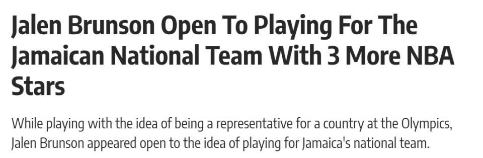 因此,尽管当前国籍问题可能使布伦森暂时无法代表牙买加,但这位尼克斯巨星最终是否会做出这一选择,依然值得关注。