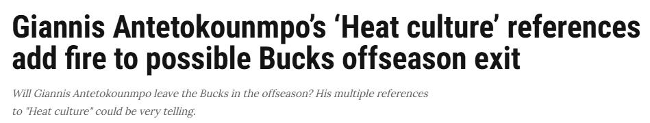 字母哥会在休赛期离开雄鹿吗?他多次称赞热火文化,这已经很能说明问题。