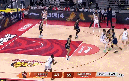 奋力争夺前场篮板,助攻杜润旺命中三分球。