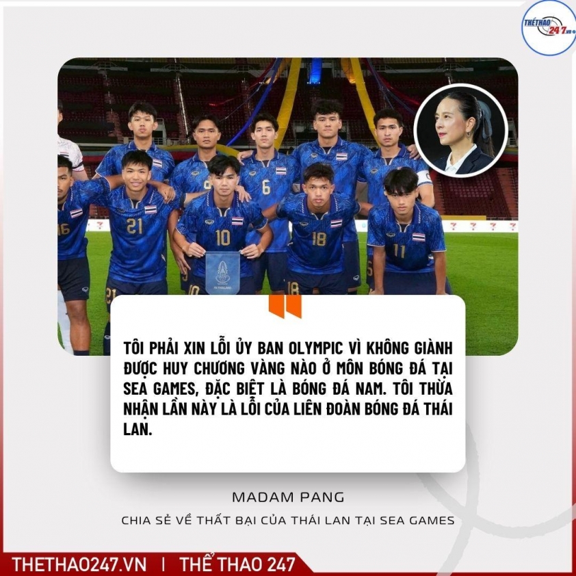“首先,我要向奥林匹克委员会道歉,因为我们未能在东南亚运动会足球项目中,特别是男子足球中获得金牌。我承认这次是泰国足球协会的失误,没有让球员在俱乐部比赛后得到足够休息,原因是东南亚运动会的集训时间与国际足联比赛日不重合,” Madam Pang说道。