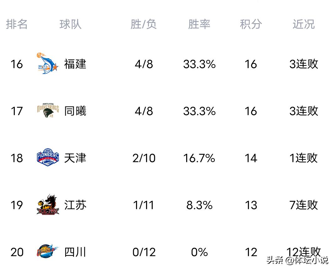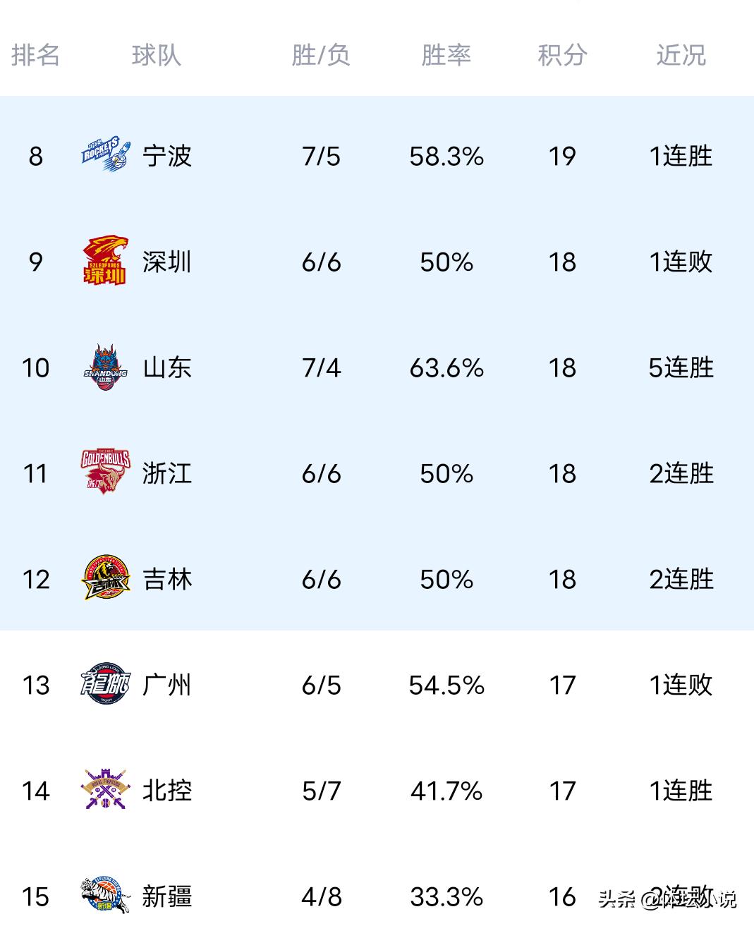 北京时间1月10日,CBA常规赛继续进行,昨晚结束的4场比赛中,宁波以94-71轻松击溃同曦,江苏以71-88惨败给传统强队辽宁,北京以85-87爆冷负于山东遭遇下克上,广厦多点开花以87-72击败新疆。最新积分榜更新为:广厦第二,北京第四,辽宁三连胜排第七,宁波第八,山东五连胜位列第十,江苏七连败排名第十九!