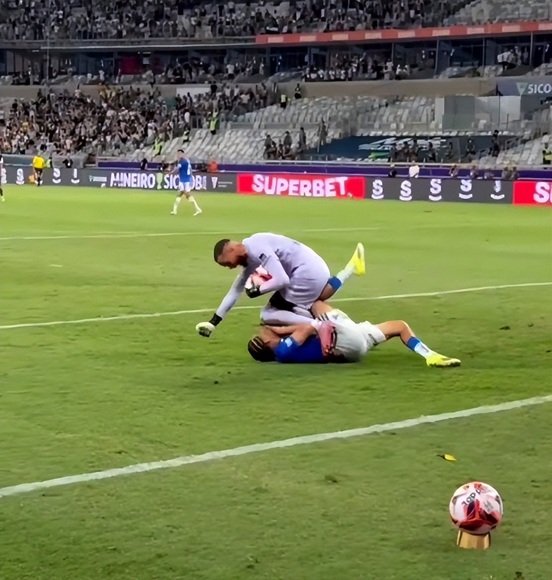 埃弗松的暴力举动立即引发了两队球员的大规模混战。克鲁塞罗的阿根廷队长罗梅罗率先飞踢埃弗松,双方的冲突从米内罗竞技一侧球门开始,一直扩散到禁区乃至中场及场外区域。前上海海港外援浩克也参与了斗殴,他先从背后挥拳击倒克鲁塞罗队长罗梅罗,后者随即倒地。随后浩克遭到克鲁塞罗的阿根廷中卫比拉尔瓦连续飞踹两脚,试图反击时被本方工作人员和安保人员拉开。