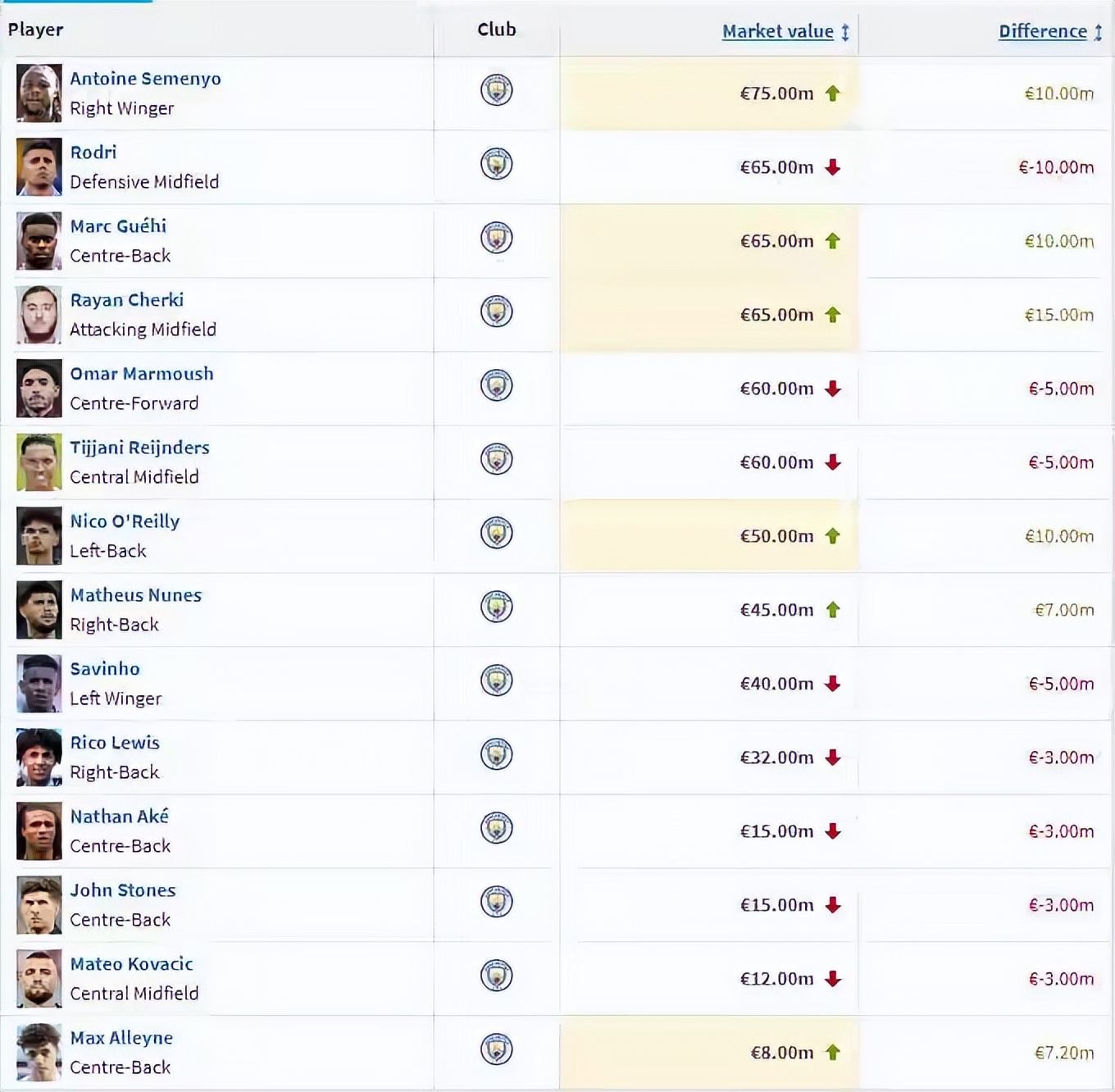 一支强队需持续进行新旧交替,罗德里逐渐老化,但曼城本赛季新援表现强劲,此次德转更新中,谢尔基身价上涨1500万欧元,塞梅尼奥和格伊均提升1000万欧元。祝愿罗德里恢复健康与状态,希望他能与曼城完成续约,但一切尊重球员意愿,同时也祝福曼城越来越好,本赛季力争更多冠军。