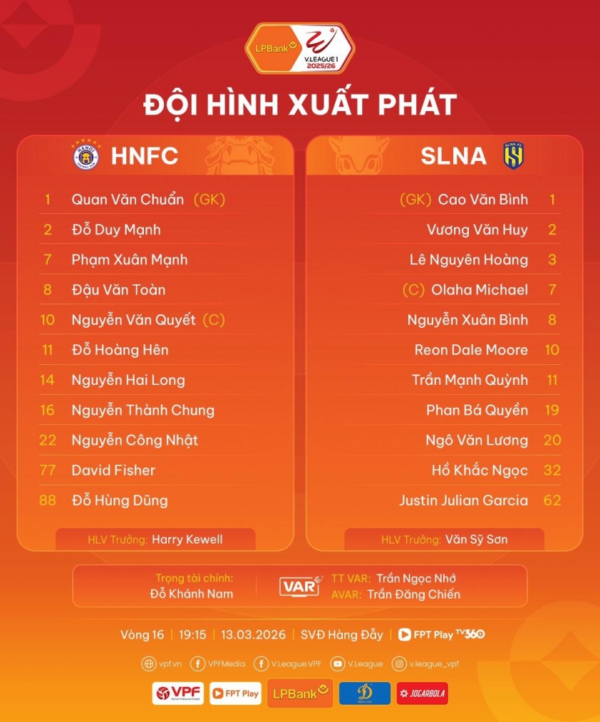 SLNA:文彬、春彬、原黄、Dale Moore、孟琼、Thanh Duc、Ba Quyen、Van Luong、Khac Ngoc、Olaha、Garcia。