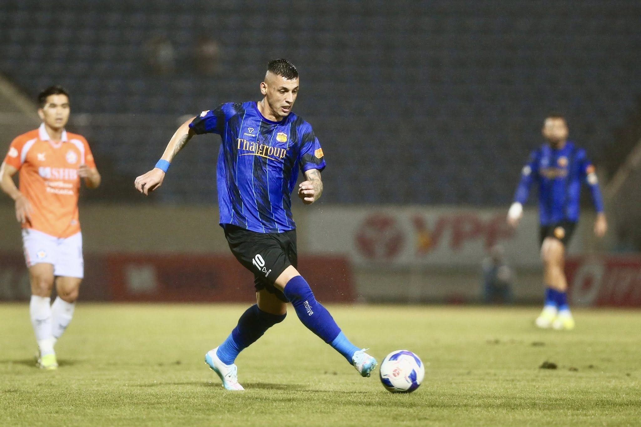 比赛开始后,SHB岘港队主动进攻并很快创造出一些危险机会。第11分钟,丁维通过一次精准的禁区内控球和射门为主队首开纪录。