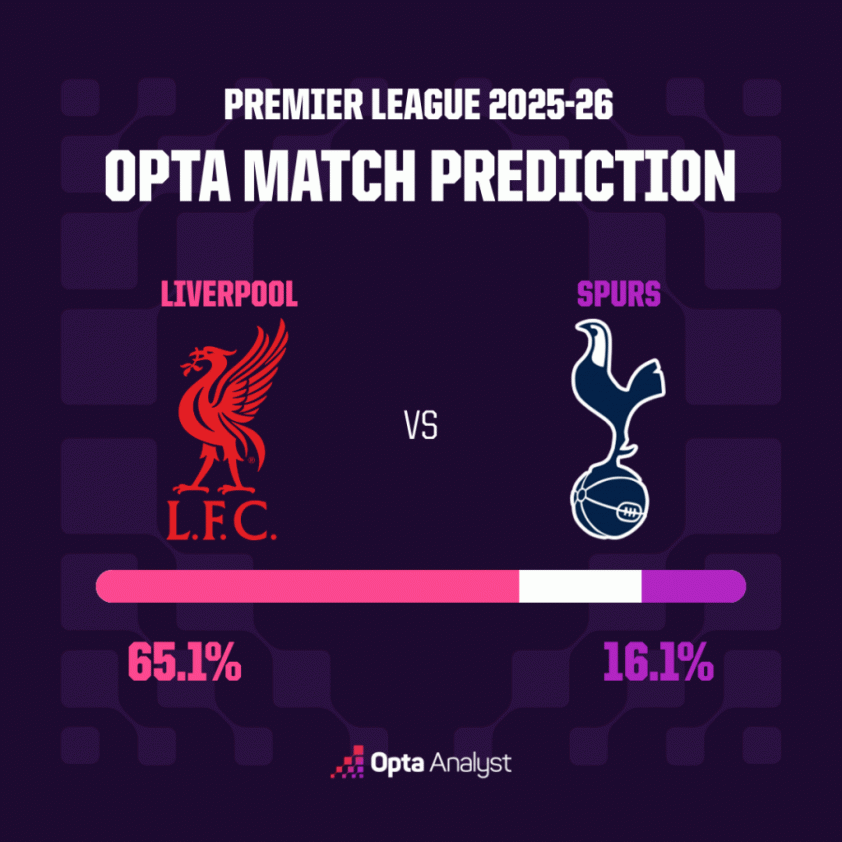 尽管近期状态不太稳定,利物浦仍被认为略胜对手一筹,这得益于主场优势以及进攻阵容足以给 托特纳姆热刺漏洞不少的防守线带来诸多麻烦。根据超级计算机的预测 Opta的数据模拟,默西塞德郡的球队有65.1%的概率获胜。与此同时,托特纳姆热刺取胜的机会仅为16.1%。
