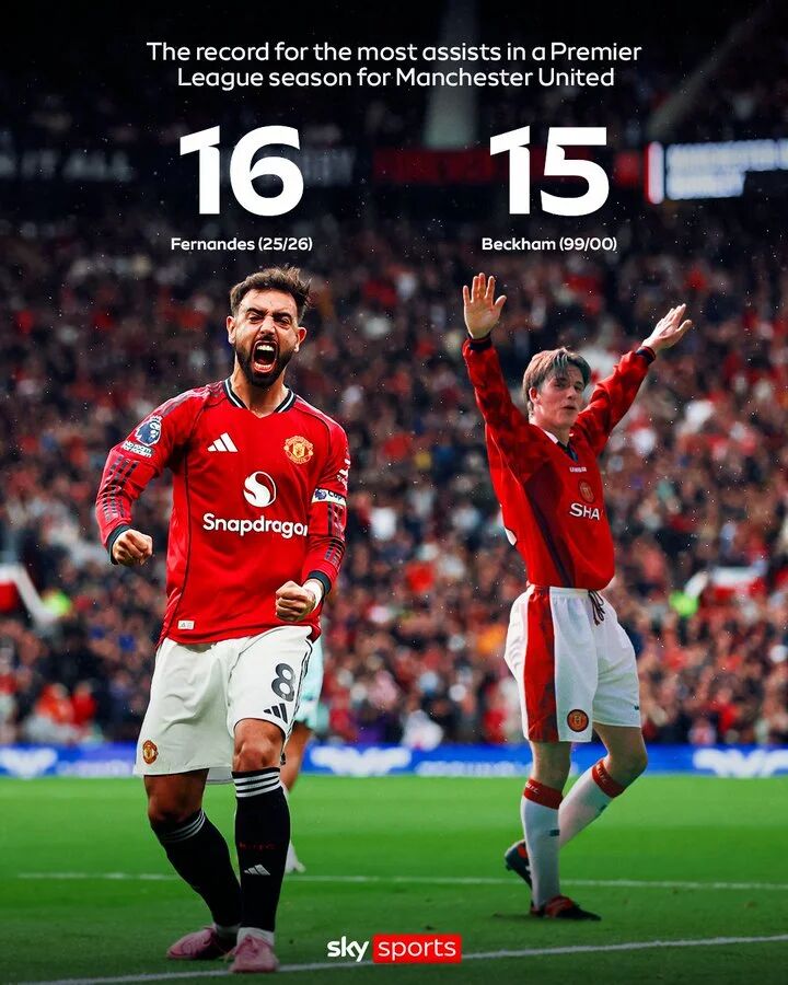 B费自2020年加盟以来,已贡献105粒进球和103次助攻,这一成就使他跻身俱乐部史上最杰出球员行列。对于超越贝克汉姆的纪录,B费回应道:“我们谈论的是最出色的传球手之一(贝克汉姆),因此我很高兴打破纪录。这不会改变我的真正目标,但能与一位以传球和传中闻名的球员并列,我感到无比荣幸。”