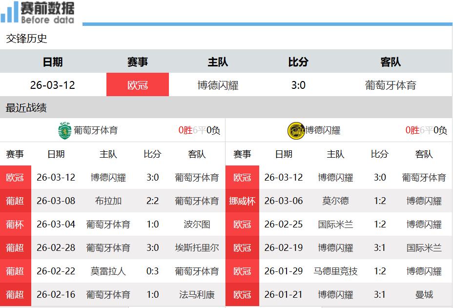 北京时间3月18日凌晨01:45,欧冠淘汰赛次回合对决,葡萄牙体育主场对阵博德闪耀!