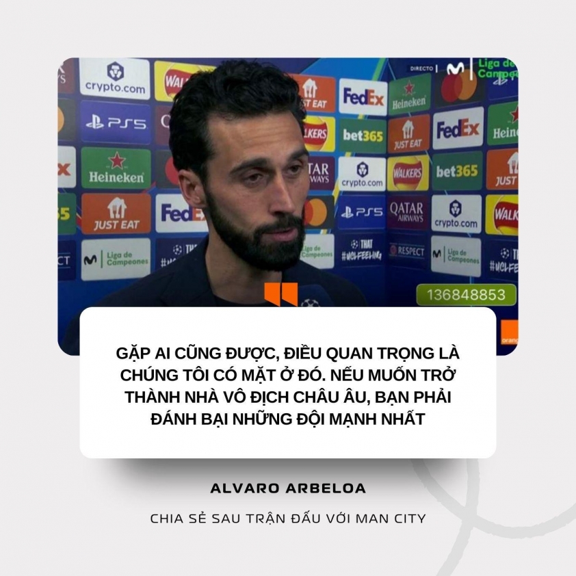 阿尔瓦罗·阿尔贝罗亚教练在皇家马德里两回合均击败曼城晋级欧冠十六强赛后,分享了引人注目的观点。