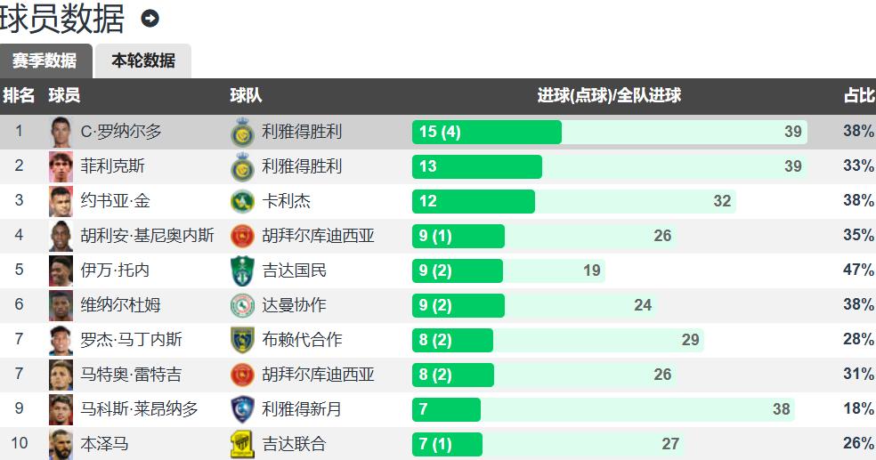 本赛季C罗已经打进15个沙特超联赛进球,其中包括4个点球,位列射手榜第一。但他在场上的触球次数非常有限,等于利雅得胜利少打一人。为了让C罗发挥,全队战术被过度消耗,导致包括新援菲利克斯在内的队员们都显得无精打采,状态大受影响。