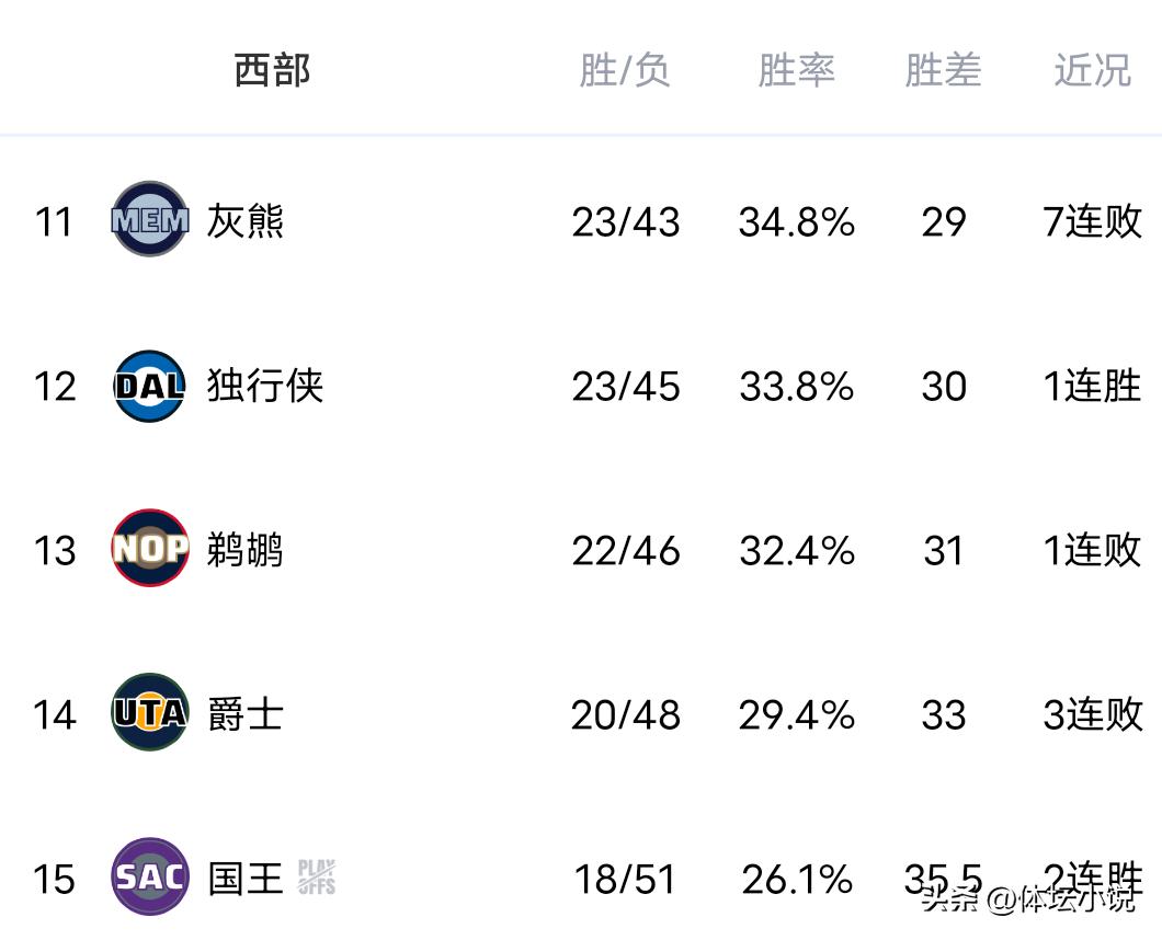 爵士与国王交锋。两支排名靠后的球队迎来对决,比拼谁更逊色,结果国王表现稍胜一筹,尽管威斯布鲁克缺席,但国王进攻效率更高,后半程发力持续拉开差距,最终击败爵士,近五战取得四胜,实属难得,照此下去倒数第一位置恐将不稳!